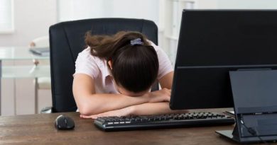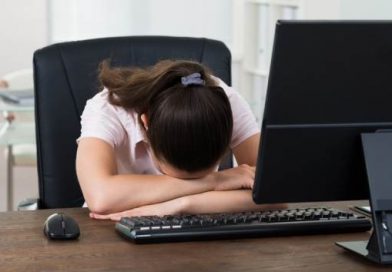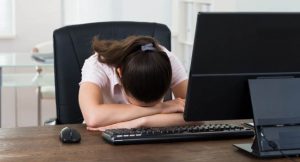 Young-Businesswoman-Sleeping-On-Desk-In-Front-Of-Computer-In-Office-causes-of...